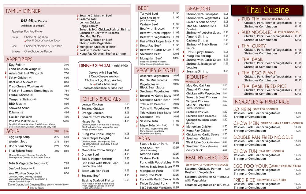 Chicken, beef, shrimp and bell peppers, cooked in a spicy and sour brown sauce. Spicy.